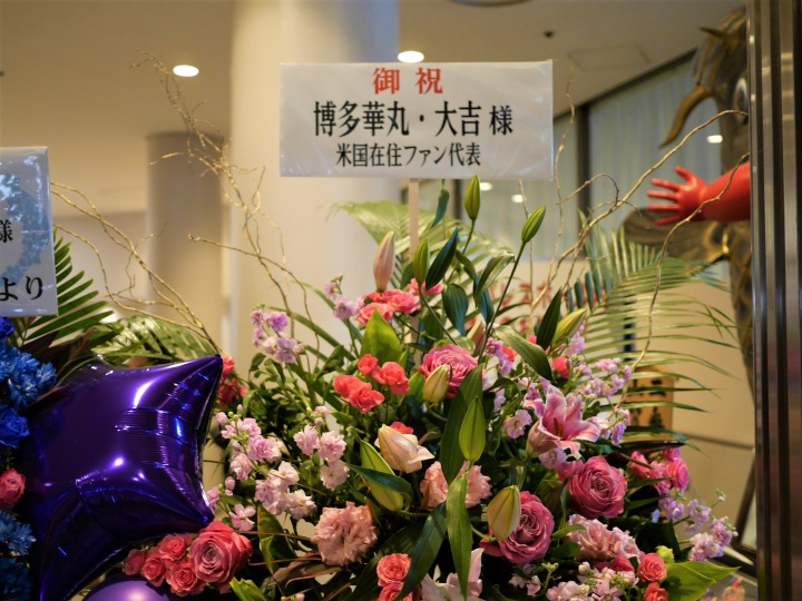 まず、会場ロビーにところ狭しと並ぶ、お花の数々。